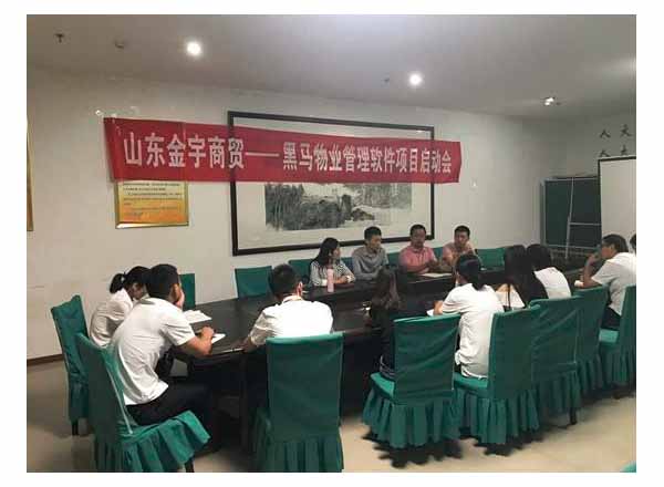 9月5日下午,山東金宇商貿——黑馬智慧物業管理軟件項目啟動大會的召開,拉開了金宇商貿物業信息化新征程。金宇商貿財務部領導、市場部領導以及相關職能部門負責人參與啟動會,山東黑馬軟件總經理段本德、商務總監湯秀菊、項目總監徐海勇、項目經理邱國棟、技術顧問楊鵬等相關人員參與項目啟動會議。會議開始,山東黑馬軟件總經理段本德先生發言:自2013年與金宇合作以來,雙方合作一直非常愉快。黑馬通過專業的軟件技術服務